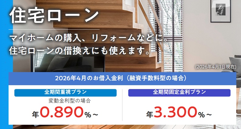2025年1月の政策金利0.25%の引き上げにより、2025年4月から基準金利が引き上げられ変動金利の最優遇金利0.62%~となっていました。2026年4月からは、2025年12月の日銀の利上げに伴い、基準金利が引き上げられ最優遇金利で0.89%となっております。