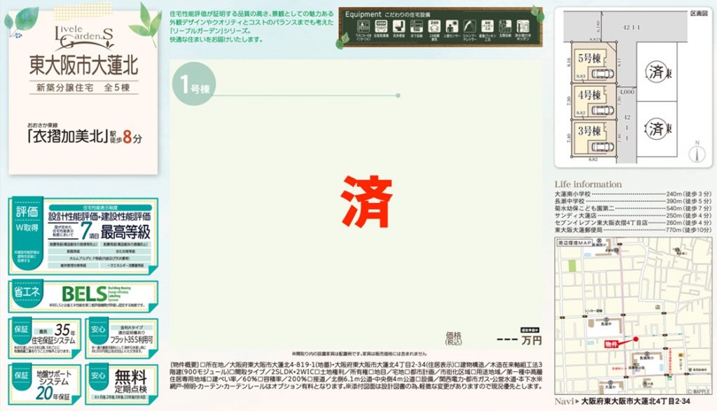 - リーブルガーデン東大阪市大蓮北5棟新築一戸建