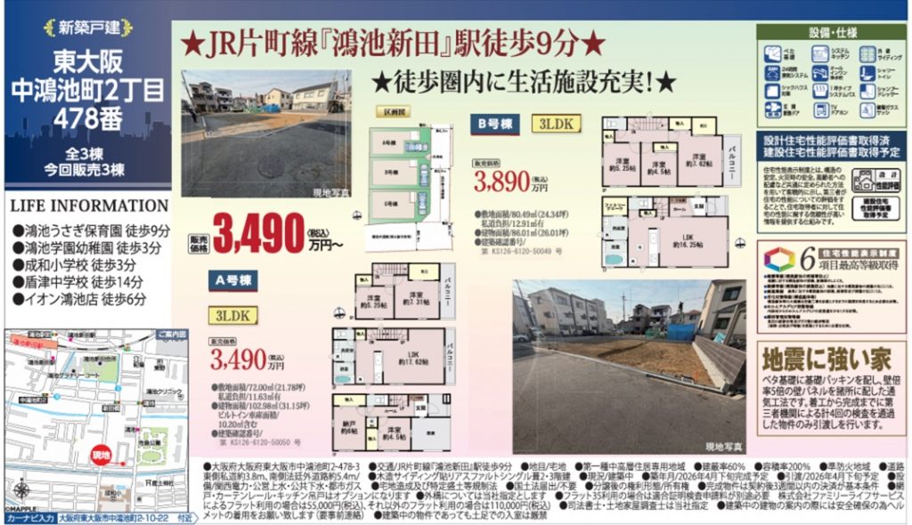 12. ハートフルタウン東大阪市大蓮東2丁目3棟新築一戸建