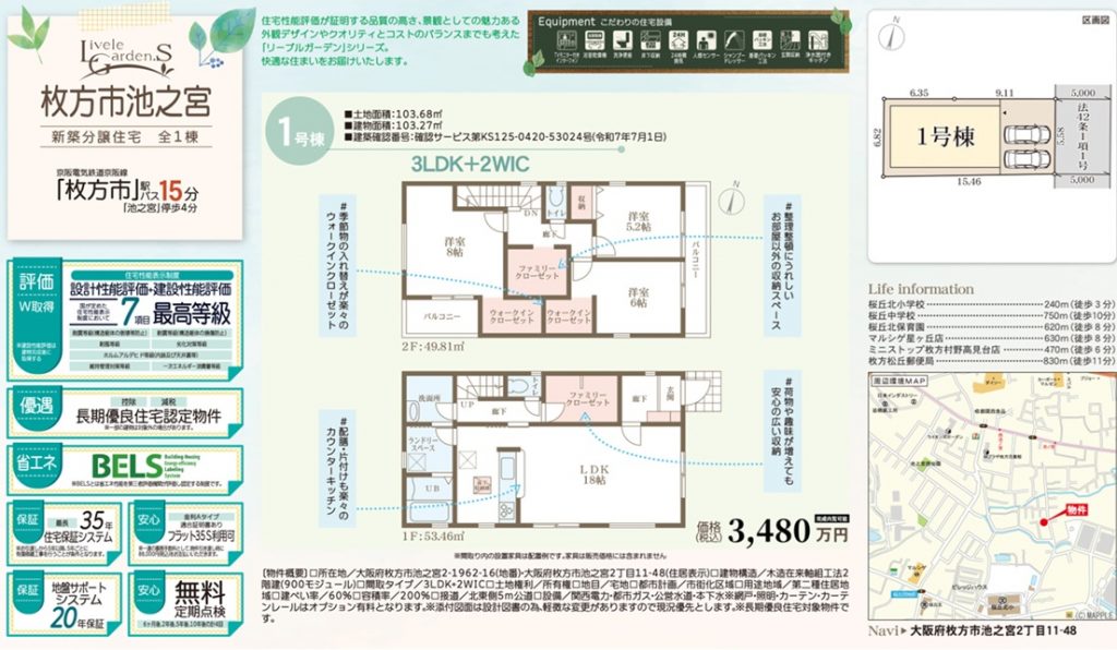 - リーブルガーデン枚方市池之宮1棟新築一戸建