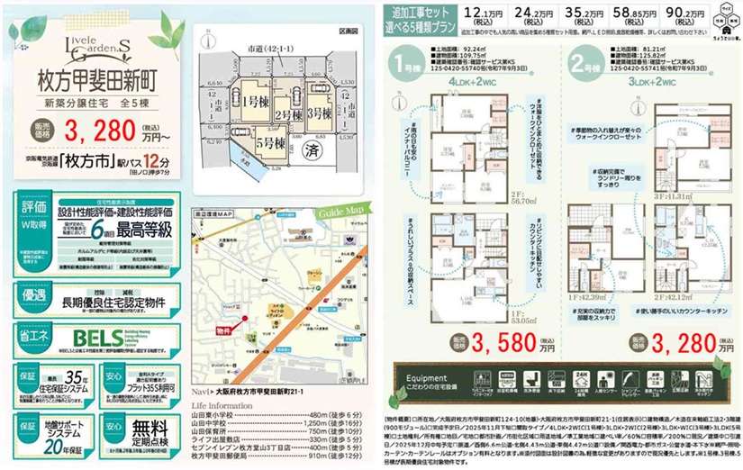 - リーブルガーデン枚方市小倉東町2棟新築一戸建て