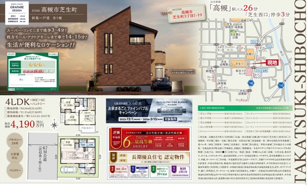 - グラファーレ高槻市芝生町1棟新築一戸建