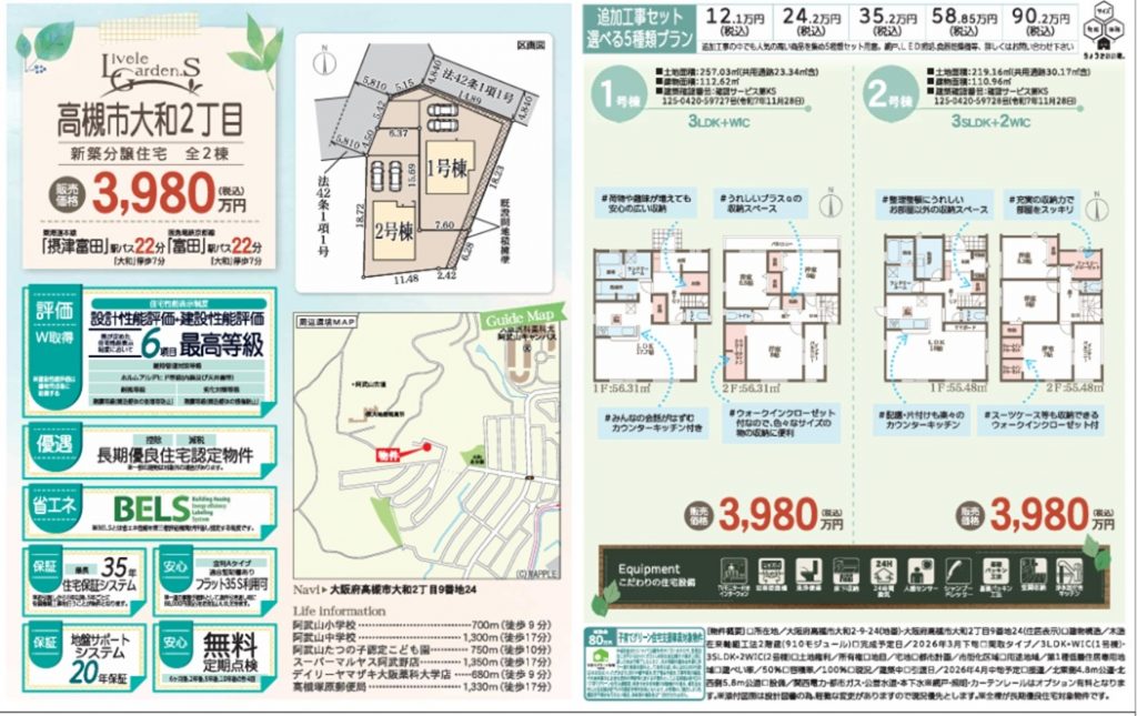 - リーブルガーデン高槻市大和2丁目2棟新築一戸建