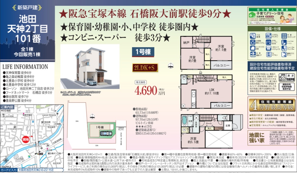 ハートフルタウン池田市天神1棟新築一戸建