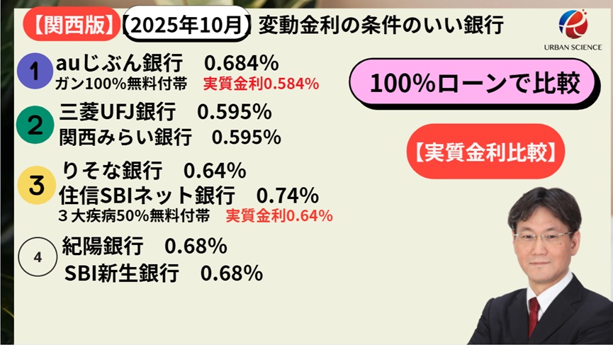 住宅ローン 変動金利情報 2025年10月【関西版】