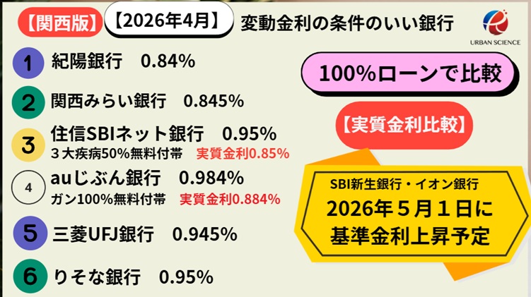 住宅ローン 変動金利情報 2026年4月【関西版】