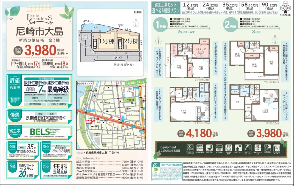 - リーブルガーデン尼崎市大島2棟新築一戸建