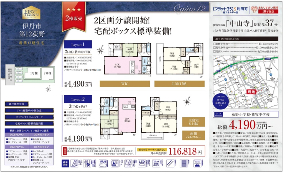 - ファーストタウン伊丹市荻野12期2棟新築一戸建