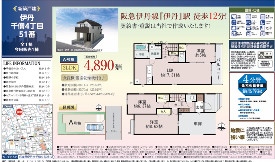 - ハートフルタウン伊丹市千僧1棟新築一戸建