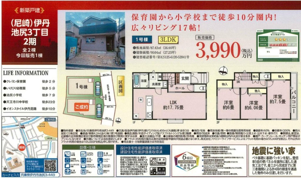兵庫県伊丹市・尼崎市内でも、両手取引の新築建売は多くあります。また、パワービルダーの新築建売も多く供給されています。特に尼崎市内では多く供給されています。