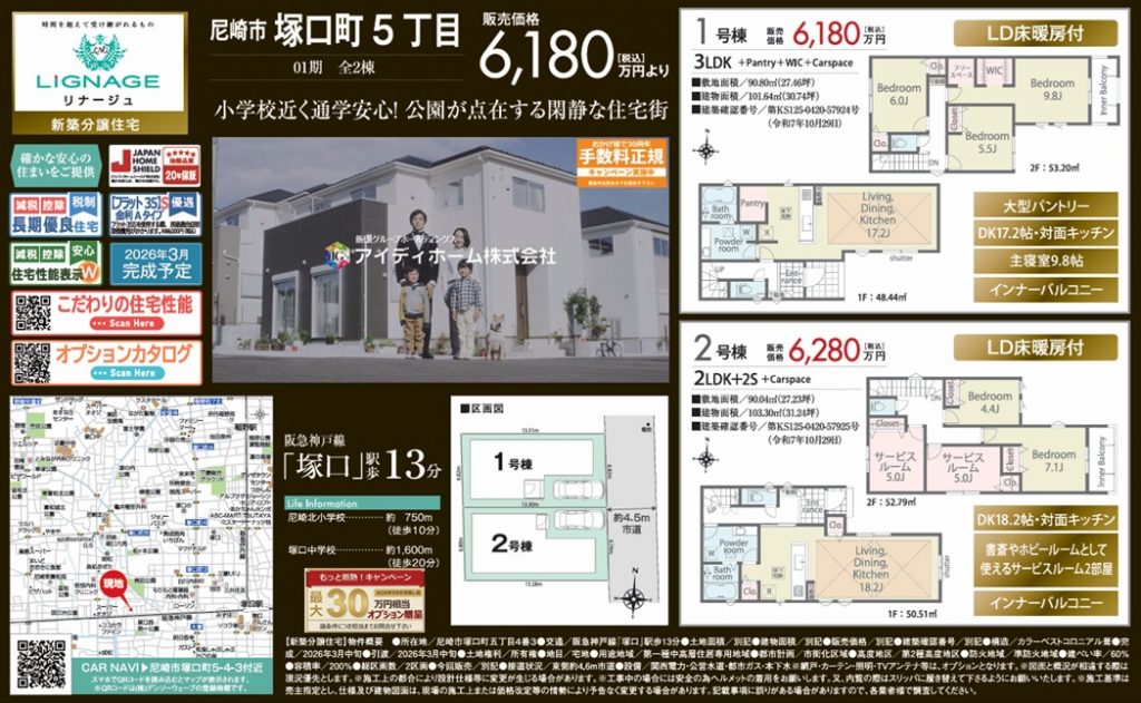 - リナージュ尼崎市塚口町2棟新築一戸建