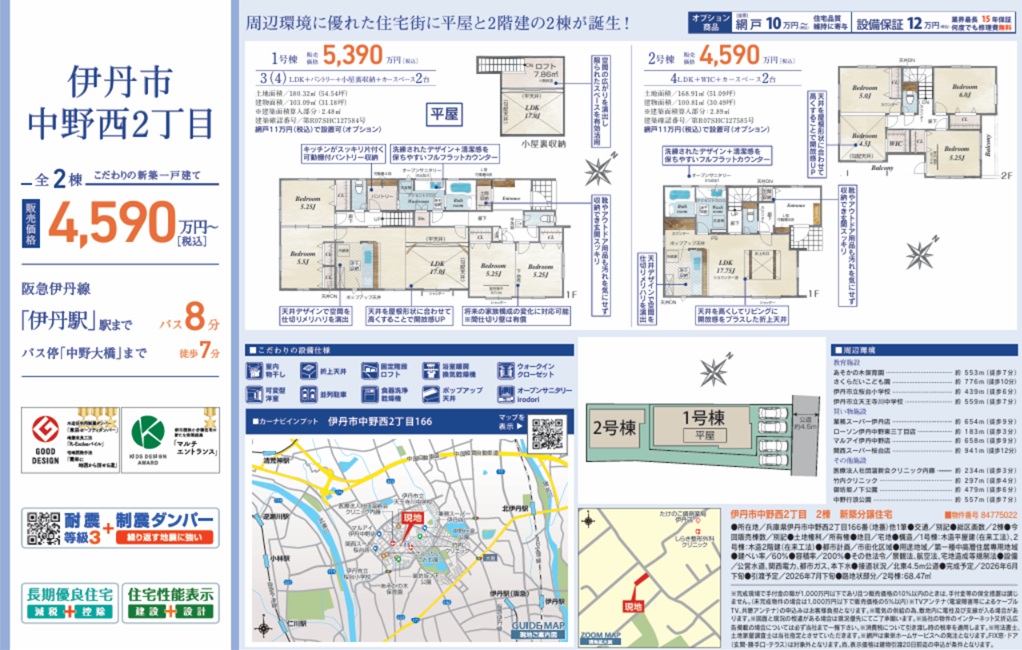 - ブルーミングガーデン伊丹市中野西2丁目2棟新築一戸建
