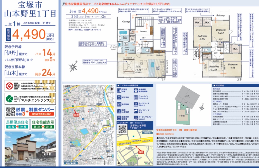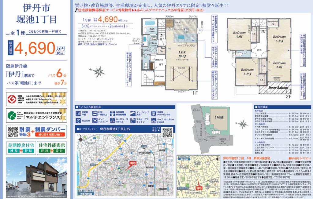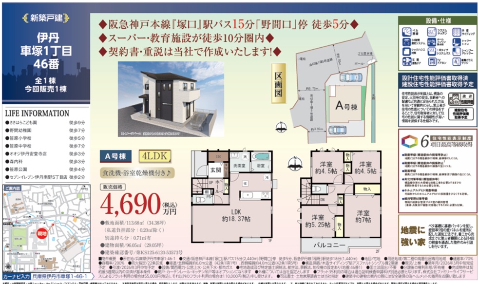 - ハートフルタウン伊丹市南野1棟1号棟新築一戸建て