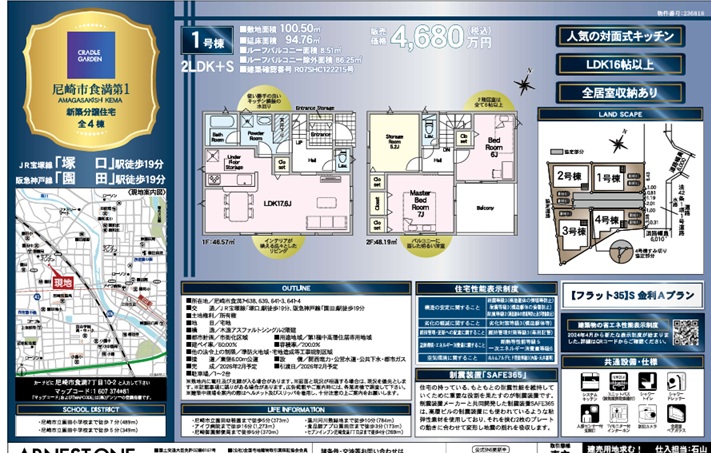 - クレイドルガーデン尼崎市食満1期4棟新築一戸建
