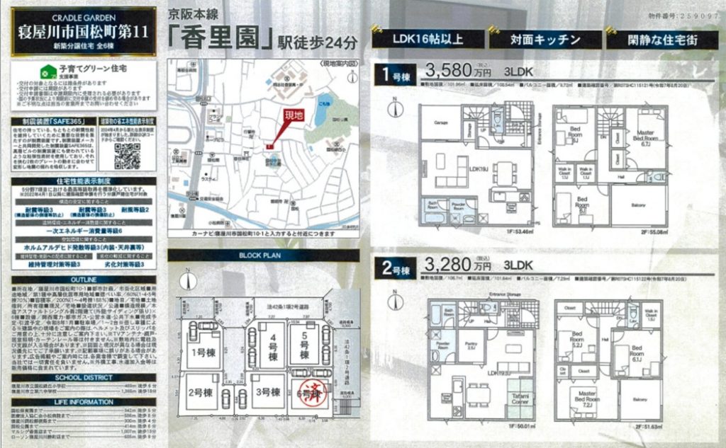 - クレイドルガーデン寝屋川市高宮4期5棟新築一戸建
