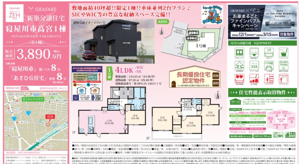- ファーストタウン寝屋川市高宮栄町1期新築一戸建て