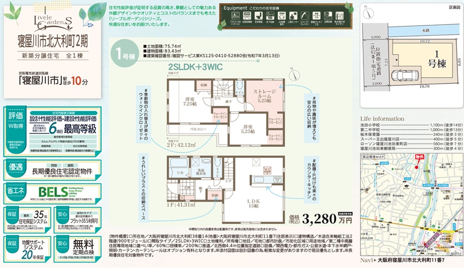 - リーブルガーデン寝屋川市萱島東1棟新築一戸建て
