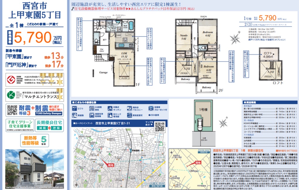 - ハートフルタウン西宮市小松南町1棟新築一戸建て