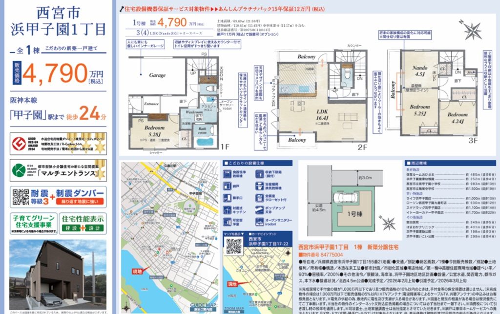 - ファーストタウン西宮市甲子園九番町2期2棟新築一戸建て