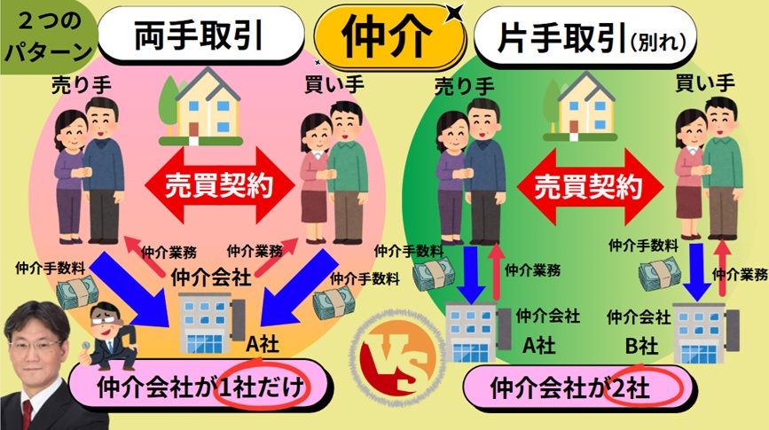 これを 片手(かたて) とか 分かれ と呼びます。片方からだけ仲介手数料をいただくからです。