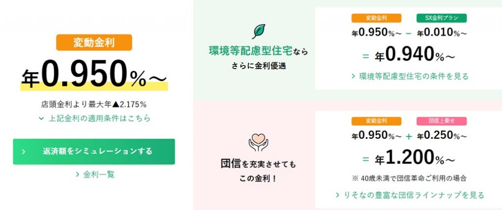 2023年~0.34%が最優遇となり、2025年4月~変動金利0.64%となりネット銀行と互角に戦っていましたが、2026年4月最優遇金利0.95%と少し後退した印象です。団信は時期によっては三大疾病と団信革命の0.05%の割引が年齢40歳未満限定で行ったりすることがあるので注視しておく必要があります。