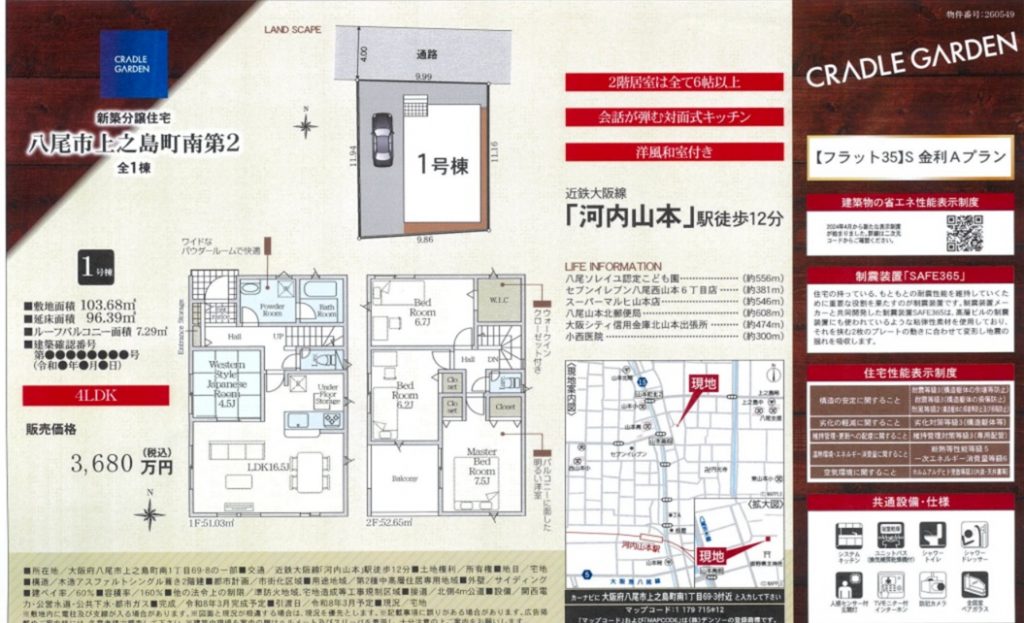 - クレイドルガーデン八尾市新家1期3棟新築一戸建