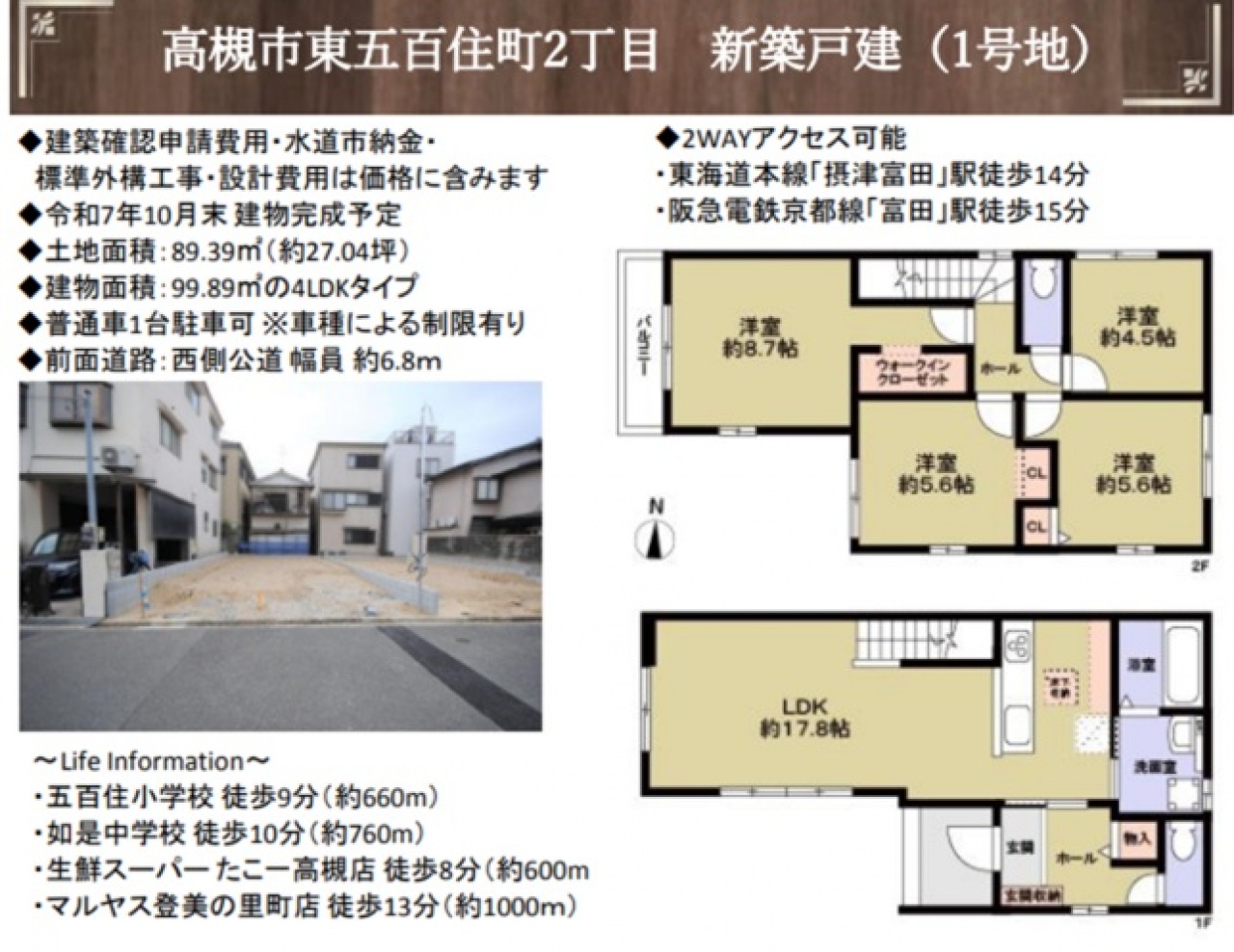吹田市・豊中市 新築一戸建て > 高槻市 東五百住町2丁目 新築一戸建て1期1号棟