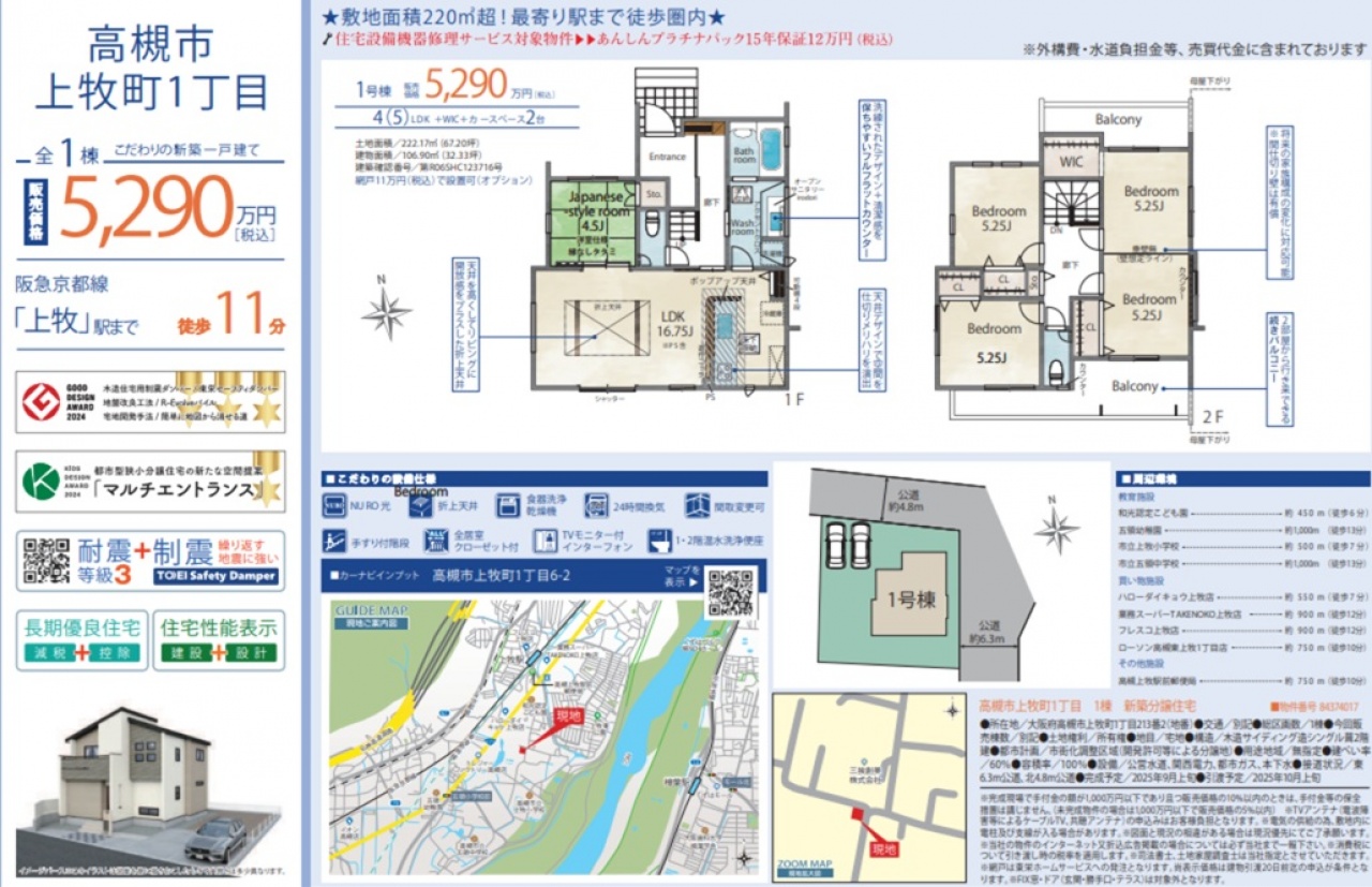★住宅性能評価書取得 ★耐震等級3 地震に強い家 ★駐車スペース2台 ★フラット35S利用可能物件 ★上牧駅徒歩11分 5290万円→5190万円2025.9.25 ※★は、売出価格より約1割引くらい、★★は売出価格より約2割引くらい値下げがある物件で、お得感の指標です。★★は、在庫処分価格で限界価格です。 ★以上の物件は中古価格と逆転しておりいつ売れてもおかしくない金額です。3月決算・大手分譲会社・在庫回転率を重視しているため強制的に価格改定あり