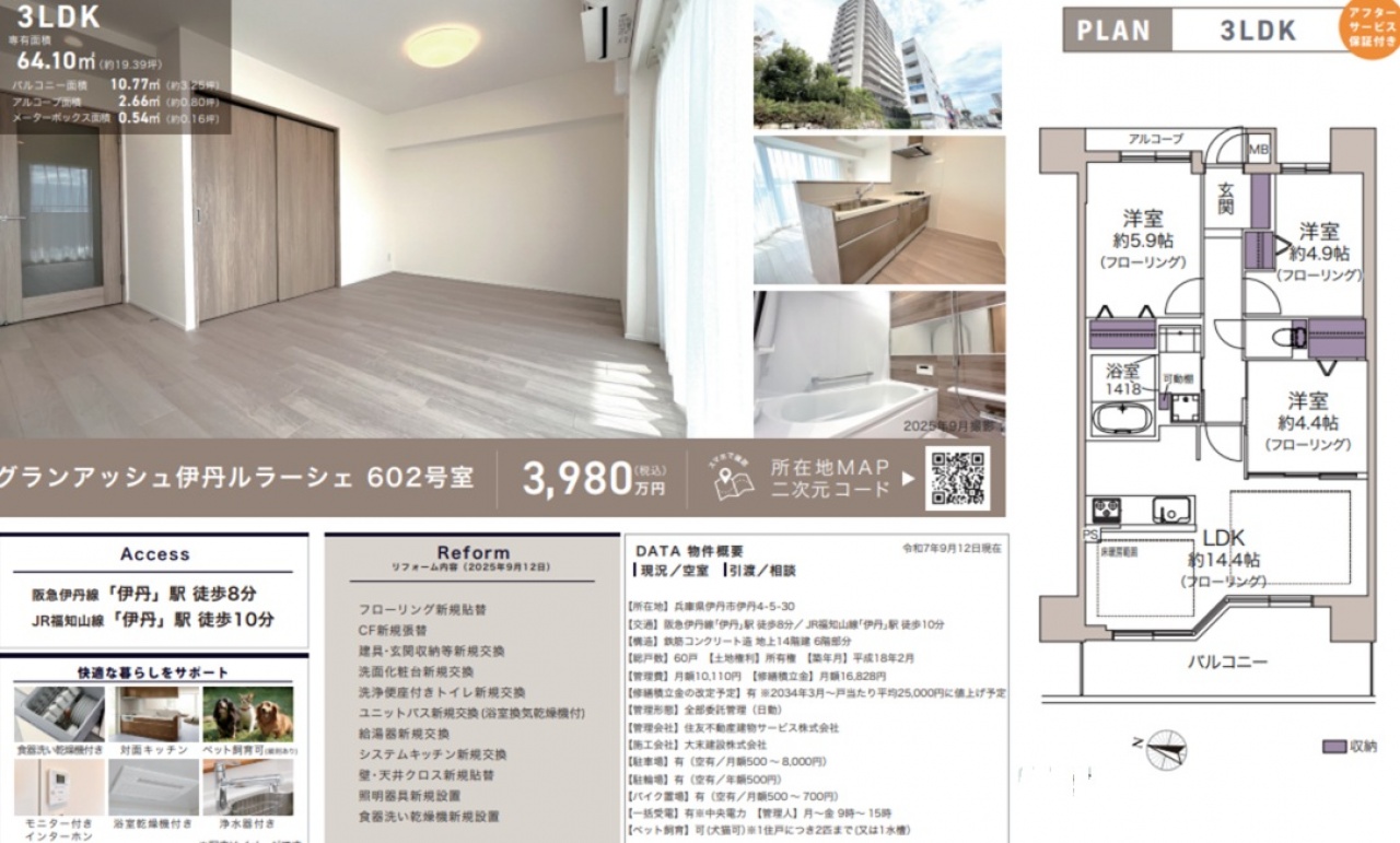 物件情報と現況に差異がある場合、現況を優先します。 掲載物件は売却済み、売却中止、価格変更となる場合がありますので、予めご了承ください。 仲介物件には所定の仲介手数料(消費税含む)が必要です。
