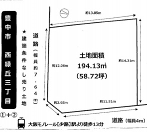 吹田市・豊中市 新築一戸建て > 豊中市 西緑丘3丁目 土地