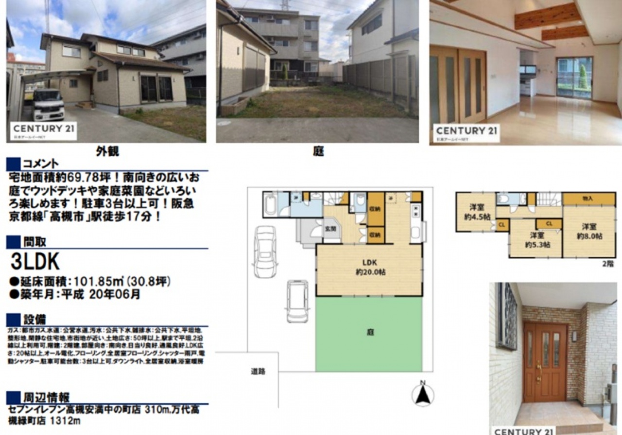 吹田市・豊中市 新築一戸建て > 高槻市 安満西の町 中古一戸建て