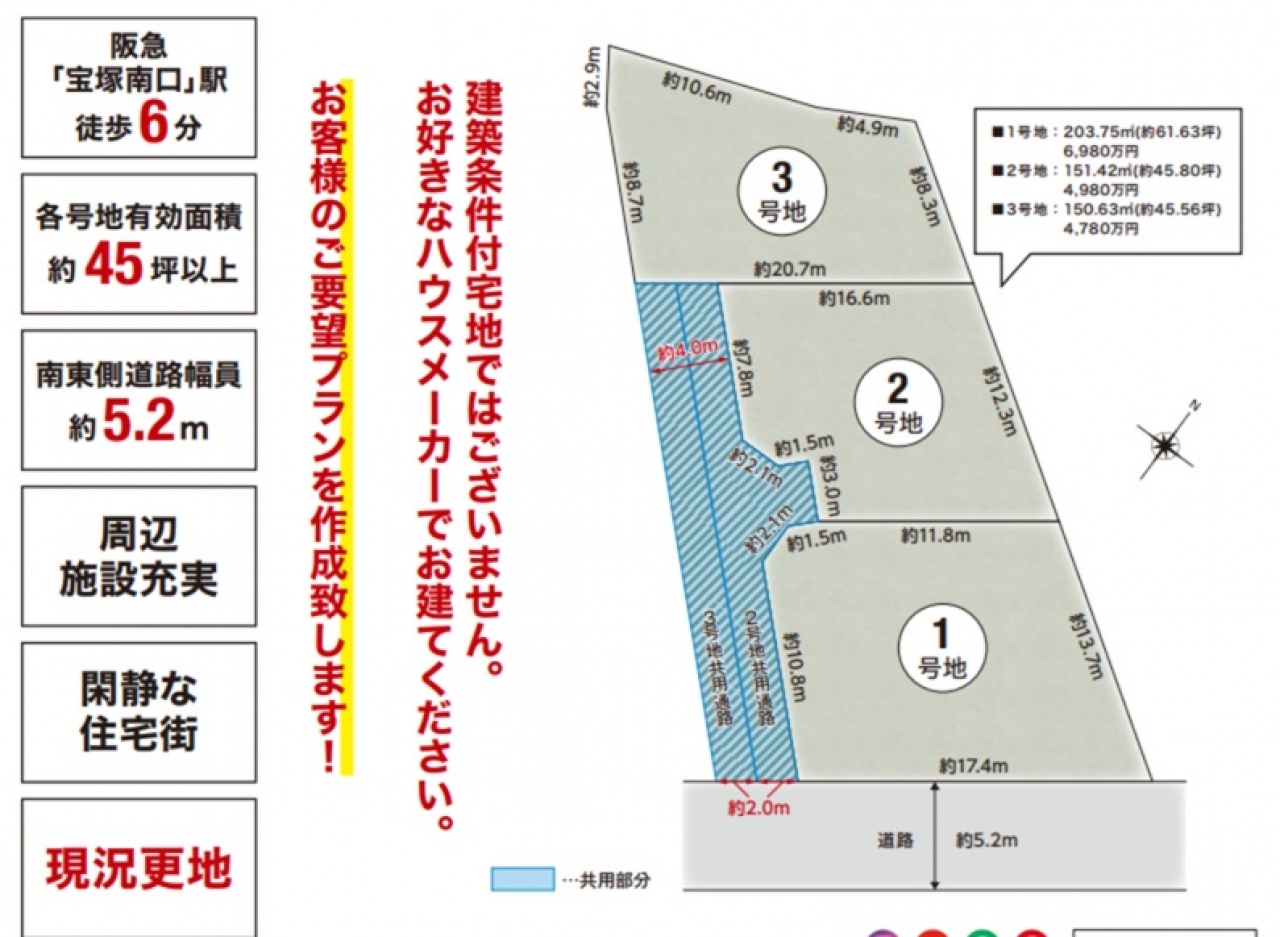 吹田市・豊中市 新築一戸建て > 宝塚市 武庫山1丁目 土地