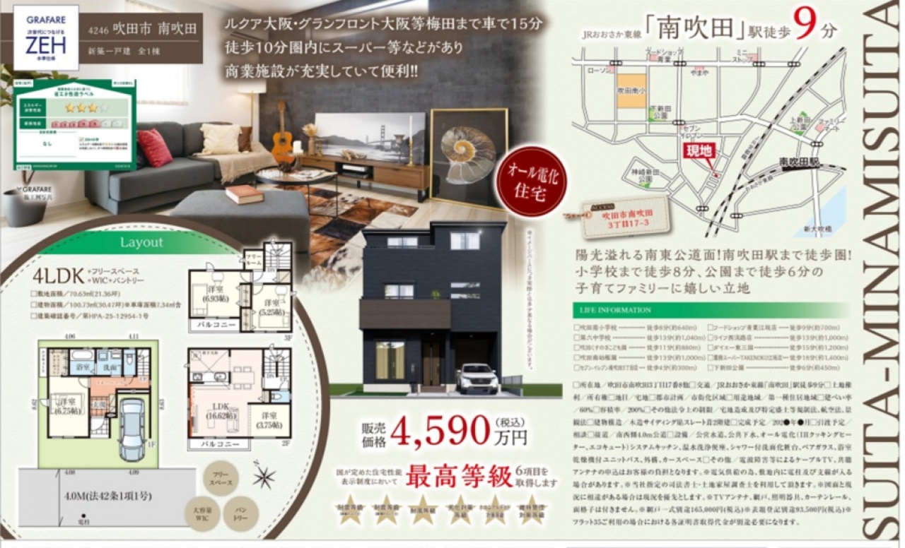 吹田市・豊中市 新築一戸建て > グラファーレ吹田市 南吹田3丁目 新築一戸建て