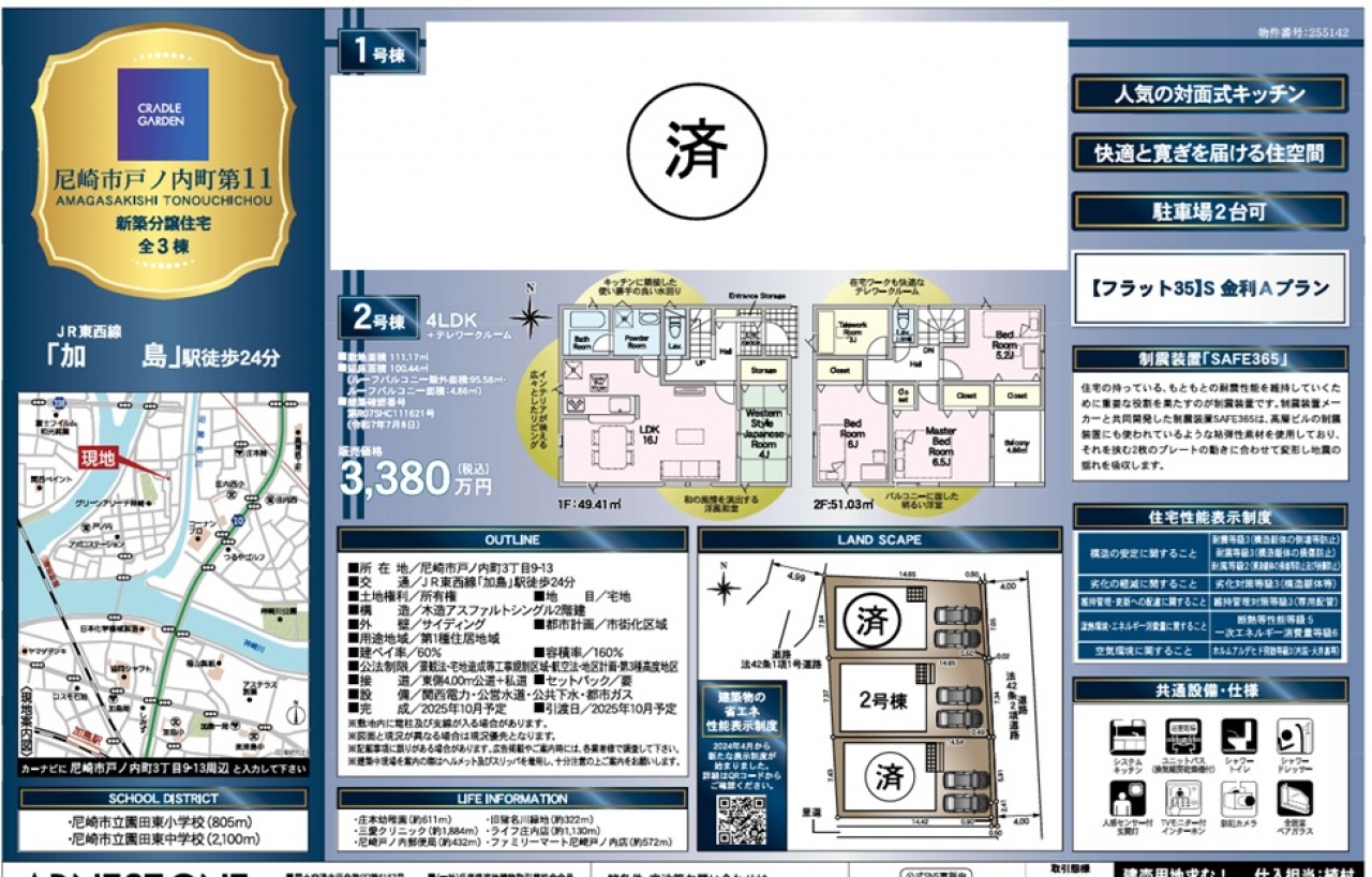 吹田市・豊中市 新築一戸建て > クレイドルガーデン尼崎市 戸ノ内町3丁目 新築一戸建て3棟2号棟