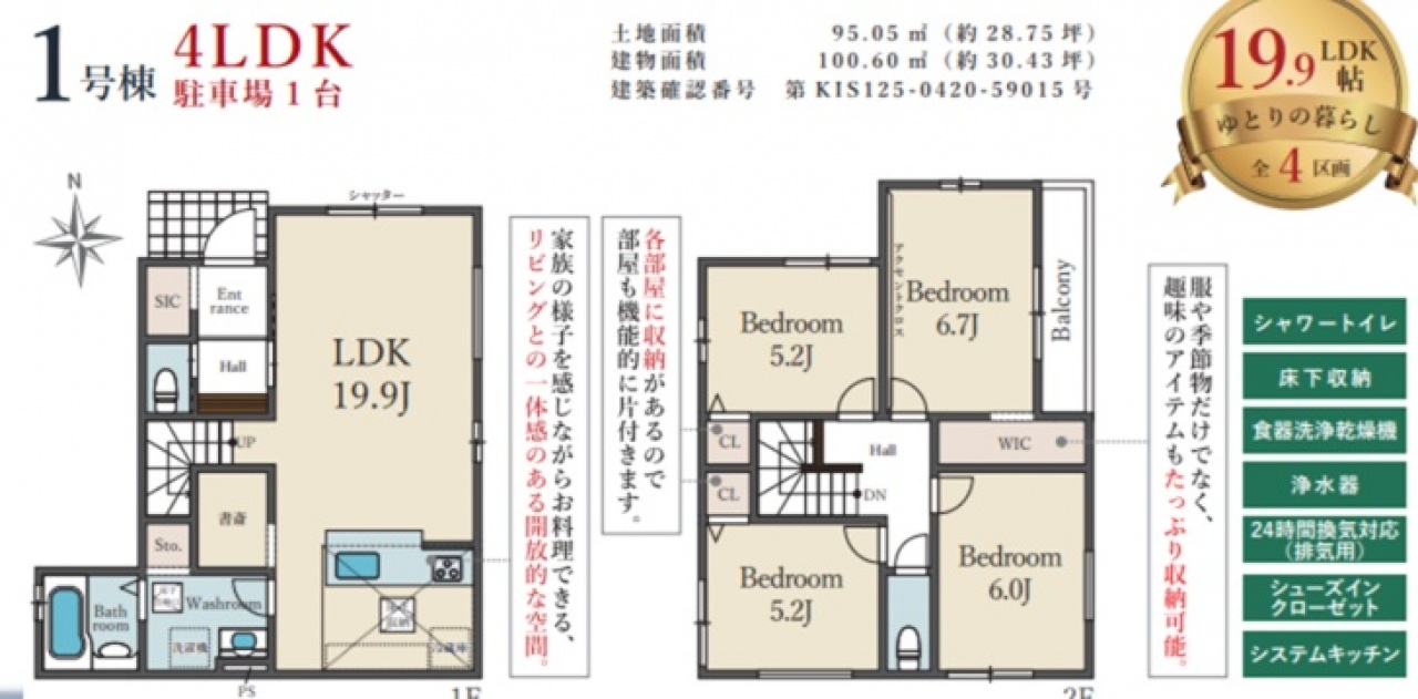 建物面積 100.60m2(30.43坪) 土地面積 95.05m2(28.75坪)