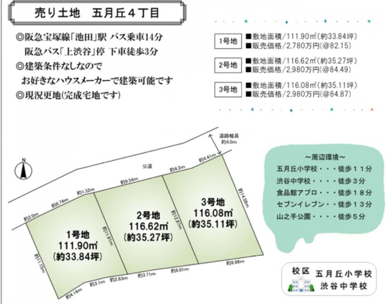 吹田市・豊中市 新築一戸建て > 池田市 五月丘4丁目 土地