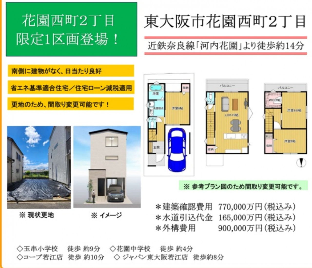 吹田市・豊中市 新築一戸建て > 東大阪市 花園西町2丁目 新築一戸建て