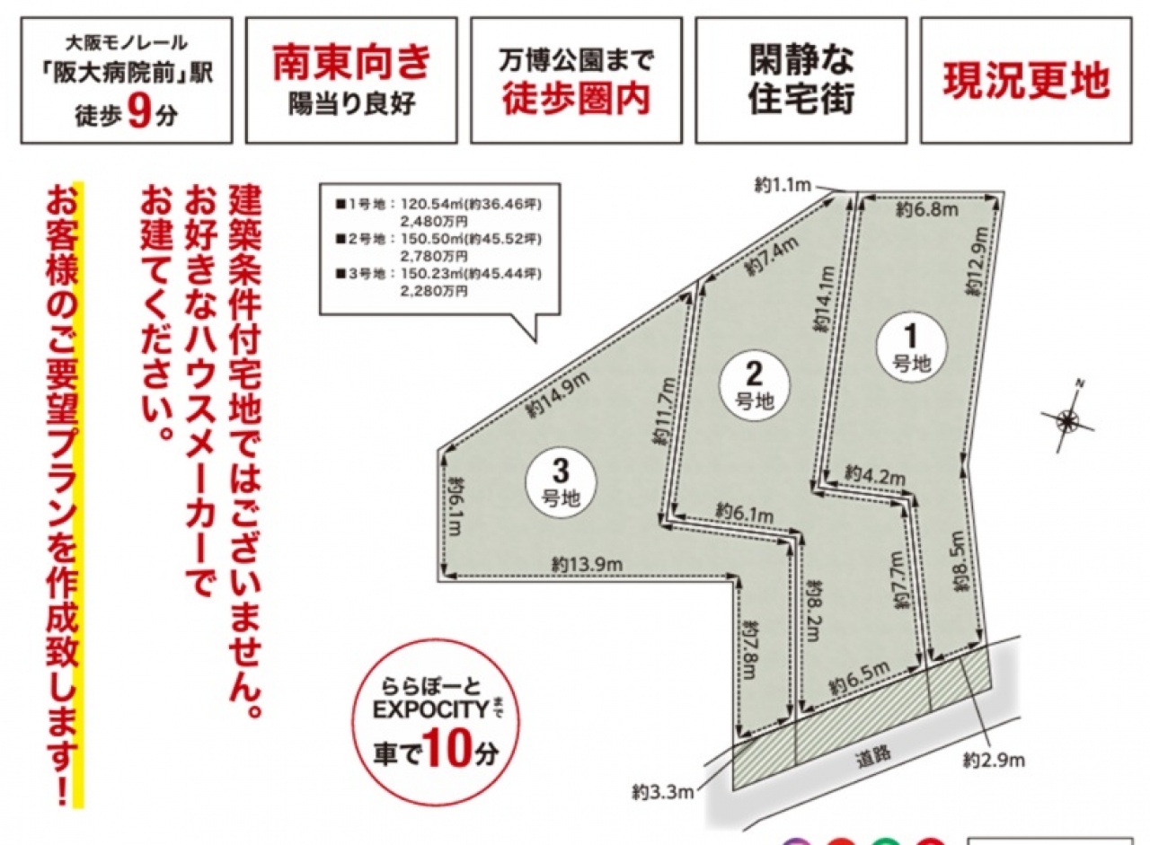 吹田市・豊中市 新築一戸建て茨木市 南春日丘5丁目 土地