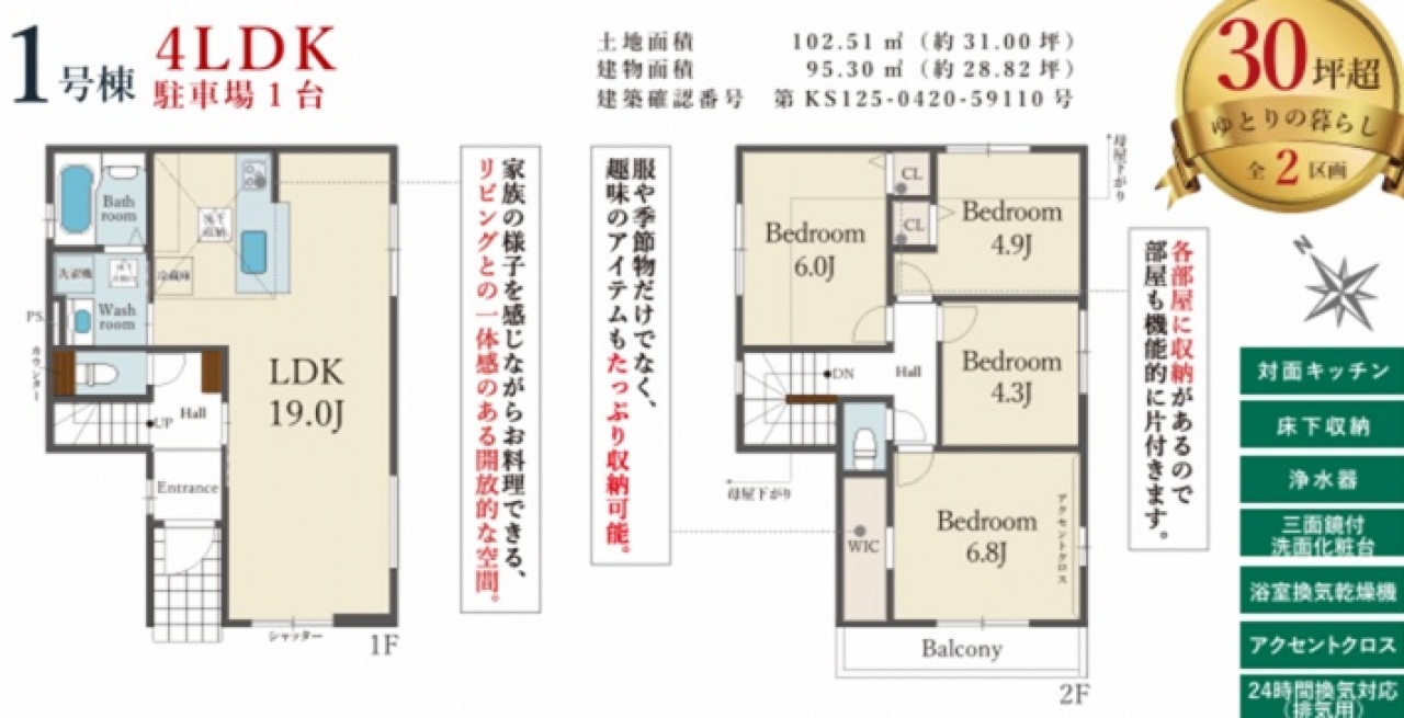吹田市・豊中市 新築一戸建て > 枚方市 香里園桜木町 新築一戸建て2棟1号棟