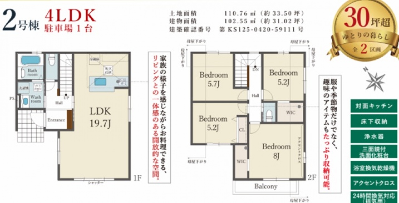 ★角地 ★駐車スペース1台 ★フラット35S利用可能物件 ★断熱等級5・ZEH水準 ※★は、売出価格より約1割引くらい、★★は売出価格より約2割引くらい値下げがある物件で、お得感の指標です。★★は、在庫処分価格で限界価格です。 ★以上の物件は中古価格と逆転しておりいつ売れてもおかしくない金額です。3月決算・大手分譲会社・在庫回転率を重視しているため強制的に価格改定あり